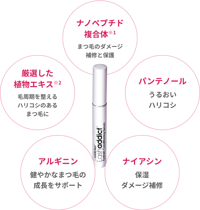 毎晩サッとひと塗りで、ナノペプチドを中心とした成分がまつ毛を健やかに導くようサポート。